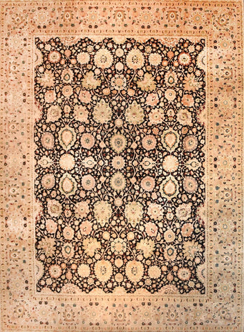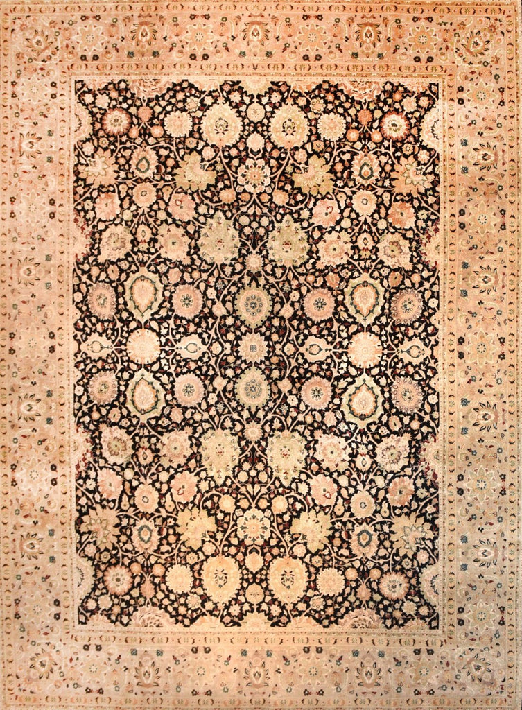 Pakestan Rug Tabriz Design, Hand Knotted Design: Tabriz  Colour: Black Border, Beige The art of weaving developed in the region comprising Paki...