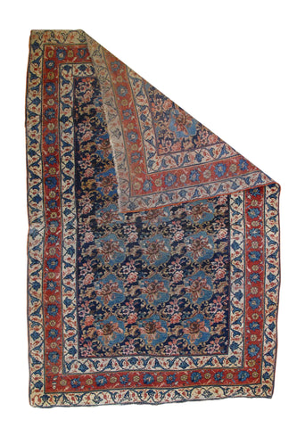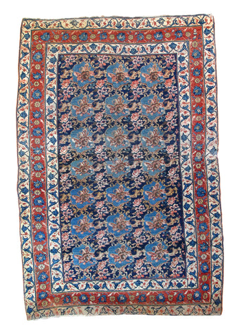 Extremely Fine Antique Persian Bidjar (rug has been professionally resized) - BG Color: Navy/Light Blue - BR Color: Rust - Size: 5'10" x 8'9" - Woo...