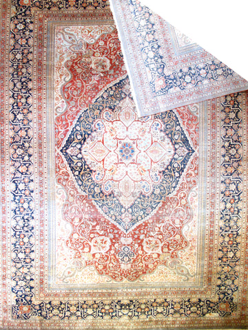 Extremely Fine Antique Persian Mohtasham Kashan - BG Color: Rust/Red/Ivory - BR Color: Navy - Size: 11'1" x 15'7" - Wool on Cotton.