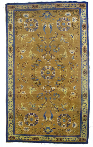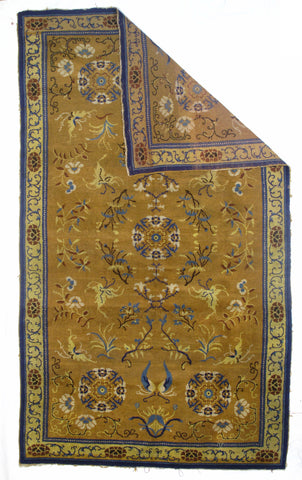 Fine Antique Chinese Peking Ninshia - BG Color: Gold - BR Color: Beige - Size: 4'10" x 8'2" - Wool on Wool.