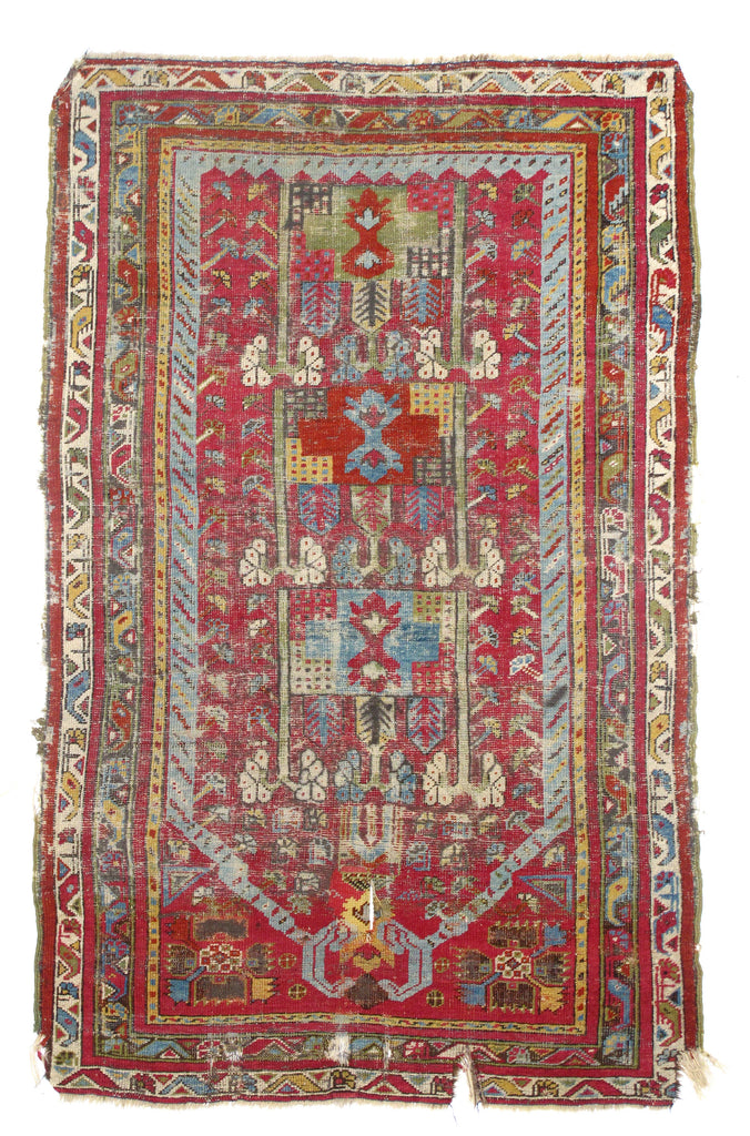 Fine Antique Karabagh - Background Color: Red/Light Blue - Border color: Ivory/Red - Size: 3 - Wool on Wool.