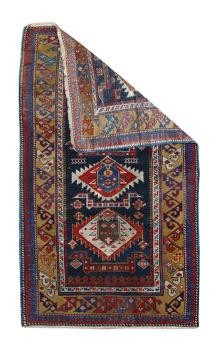 Fine antique Karakashli - Background Color: Navy/Red/Ivory - Border color: Gold/Red - Size: 2 - Wool on Wool.