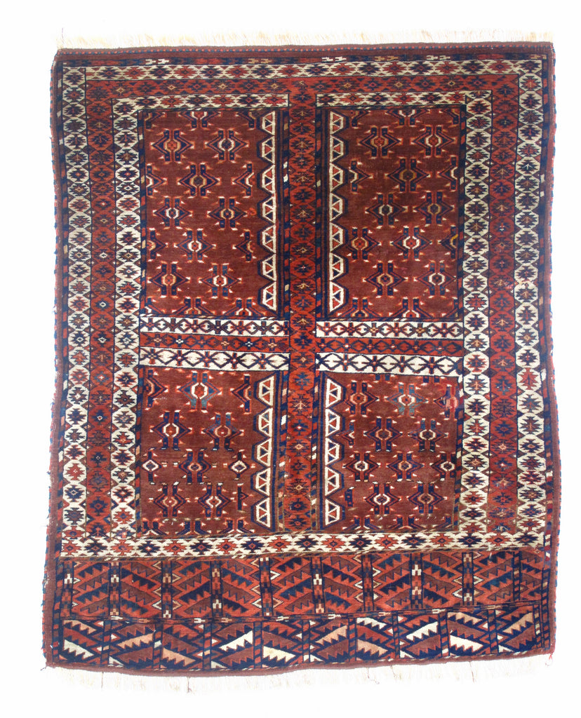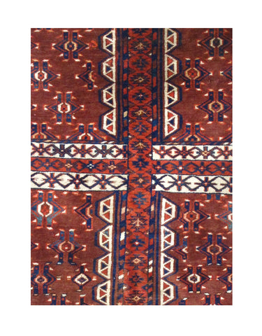 Fine Antique Khachli Bokhara Caucasus - BG Color: Burgundy - BR Color: Burgundy - Size: 4'2" x 5'2" - Wool on Wool.