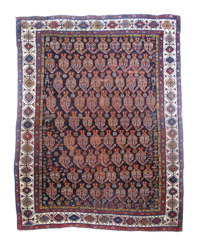 Fine Antique Khamse Tribal - BG Color: Navy - BR Color: White - Size: 5'9" x 7'5" - Wool on Wool.