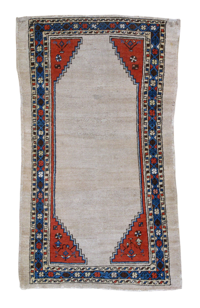 Fine Antique Persian Bakhshayesh - BG Color: Ivory/Rust - BR Color: Light Blue - Size: 2'6" x 4'3" - Wool on Wool.
