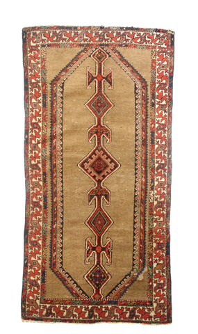 Fine Antique Persian Sarab - BG Color: Camel - BR Color: Red - Size: 3'7" x 6'8" - Wool on Wool.