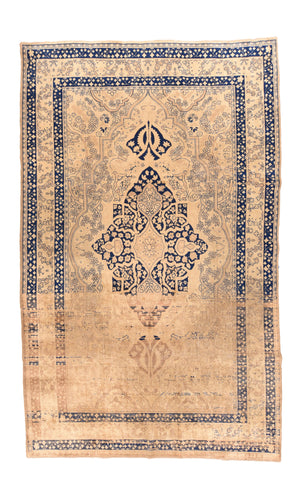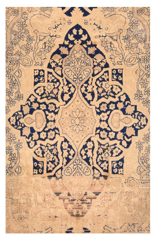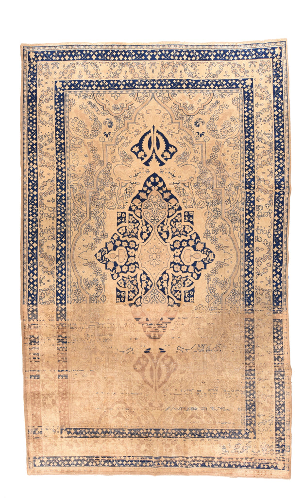 Fine antique Persian Tabriz - Background Color: Ivory/Grey Navy - Border Color: Ivory/Blue - Size: 7'9" x 11'6" - Wool on Cotton.