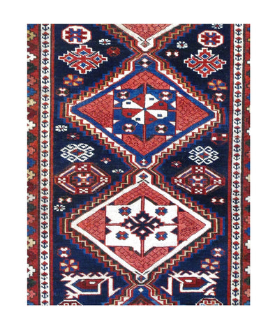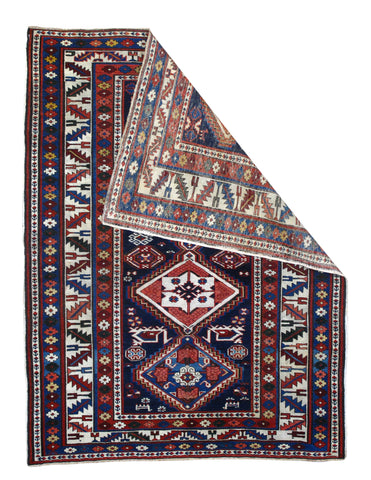 Fine Antique Shirvan Caucasus - BG Color: Blue/Red - BR Color: Ivory - Size: 3'4" x 4'5" - Wool on Cotton.