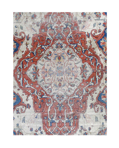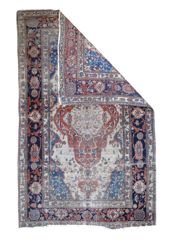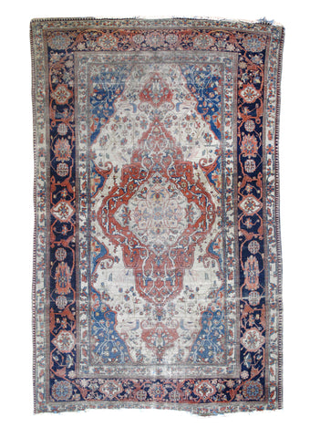 Fine AntiquePersian Mohtasham Kashan - BG Color: Ivory/Light Blue/Rust - BR Color: Navy - Size: 4' x 6'7" - Wool on Cotton.