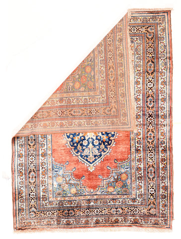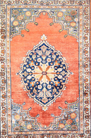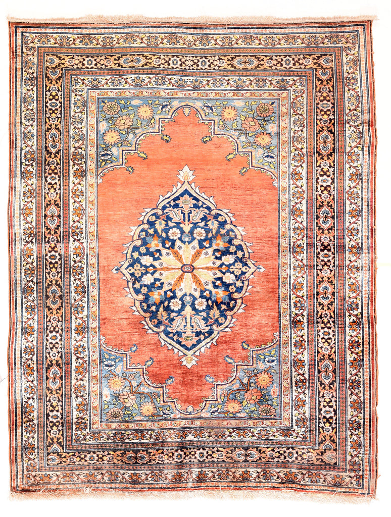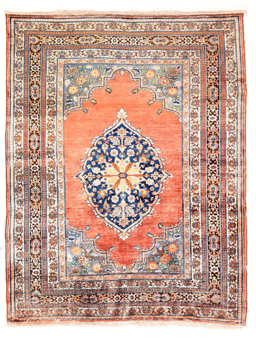 Antique Salmon Persian Silk Tabriz Haji Jalili Area Rug.