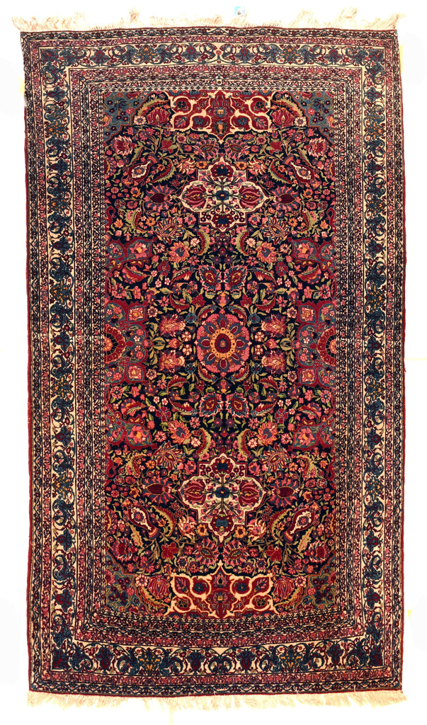 This relatively early, Interwar large scatter eschews the usual medallion pattern for a dense allover pattern based on full ivory four palmette qu...