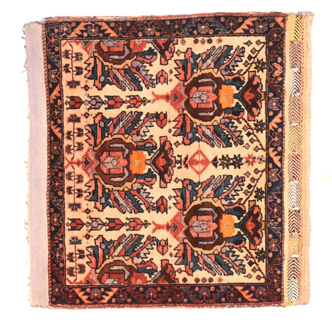 One of a pair of saddlebag (khurdgin) pile face panels, this SE Persian tribal artifact showstwo rows of a giant petal palmette pattern on an old i...