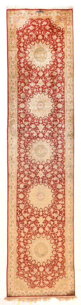 There are a number of these especially narrow, finely knotted central Persian city runners in our extensive inventory. This closely woven, well-dra...