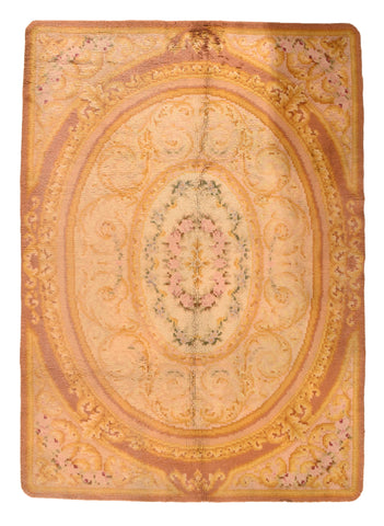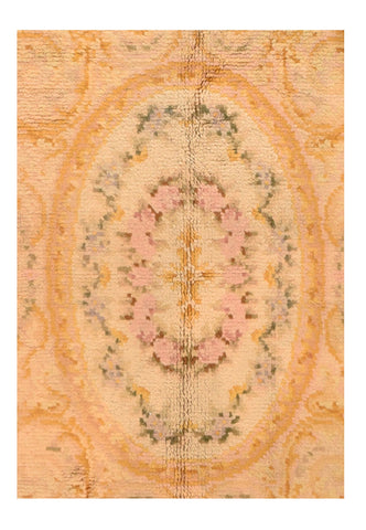 Antique Beige Savonnerie Spanish Area Rug.
