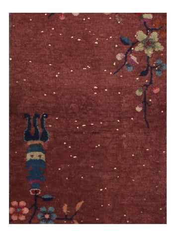Antique Burgundy Chinese Nickel Rug.
