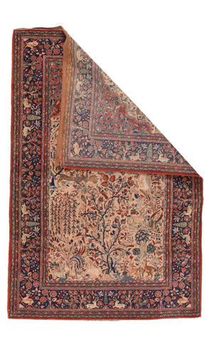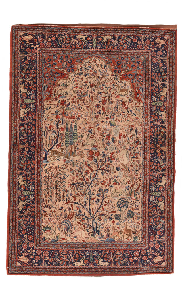 Antique Fine Ivory Kashan Dabir Persian Rug.