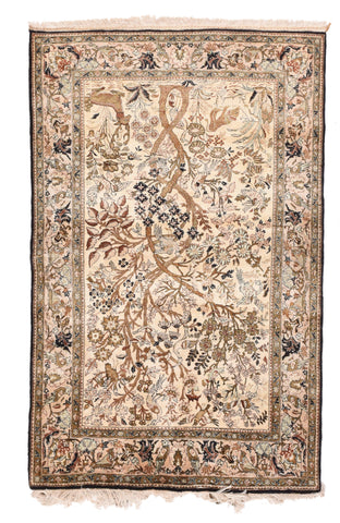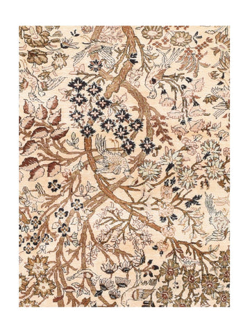 Vintage Ivory Ivory Qum Persian Area Rug.