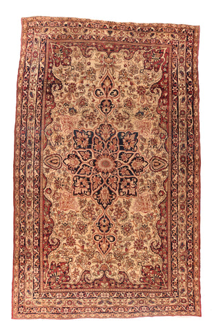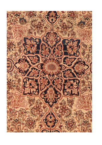 Antique Ivory Lavar Kerman Persian Area Rug