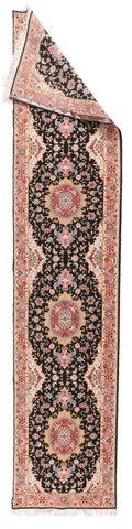 Excellent Fine Black Tabriz Persian Wool and Silk Area Rug