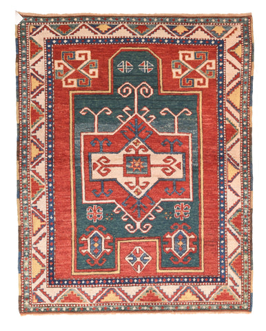 This is a very classic Fachralo type of southwest Caucasian Kazak prayer rug with a relatively narrow natural dye palette including: madder red fo...