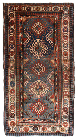 No cultural appropriation here. But a characteristic south Caucasian ivory Karabagh border with colourful octagons and paired triangle fillers fram...
