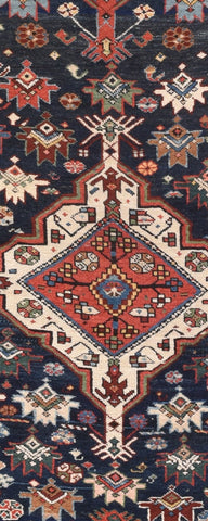 Often Karabagh and Northwest Persian rugs are so close that it is practically impossible to definitively separate them. This wide runner could be e...