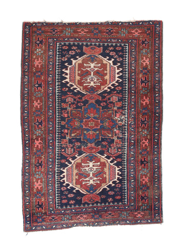 Antique Navy Karajeh Heriz Persian Area Rug.