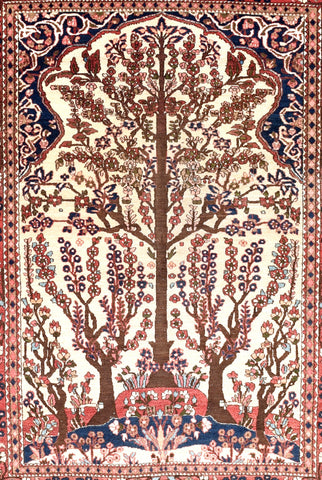 This is a finely woven, central Persian urban scatter with a shoulder-pinched and top scalloped old ivory niche featuring a tonal. Layered mound su...