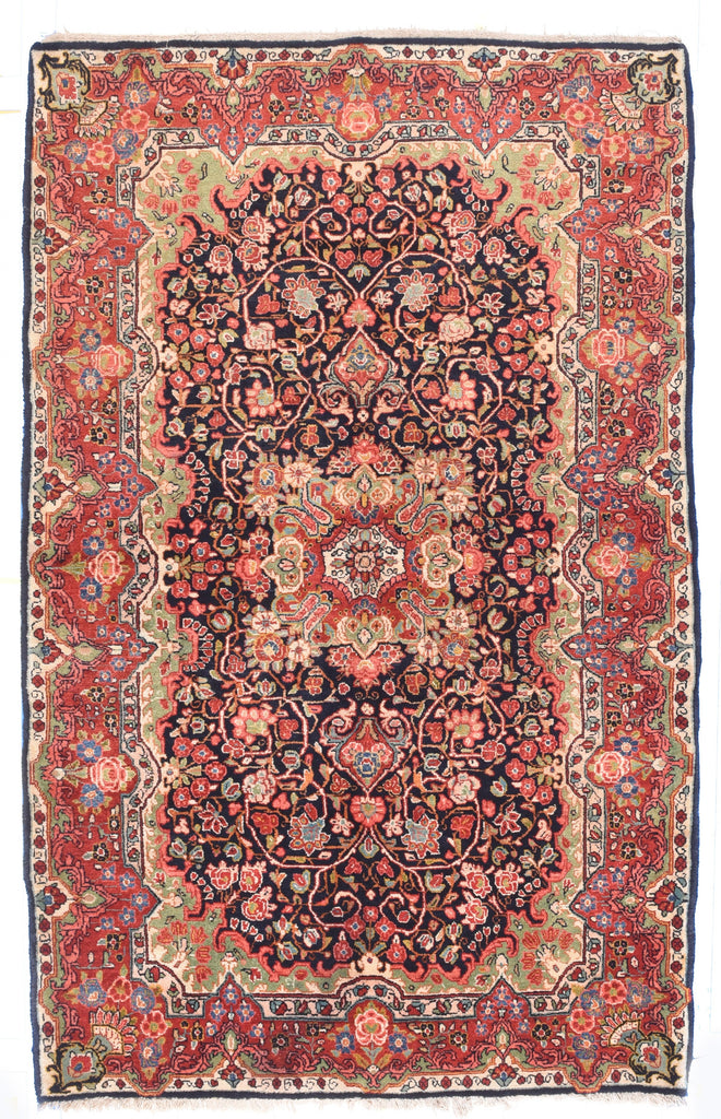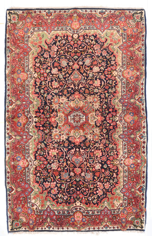 Not your usual “American Sarouk” style with detached flower sprays, but a classic octogramme palmette medallion on a navy ground tightly designed w...