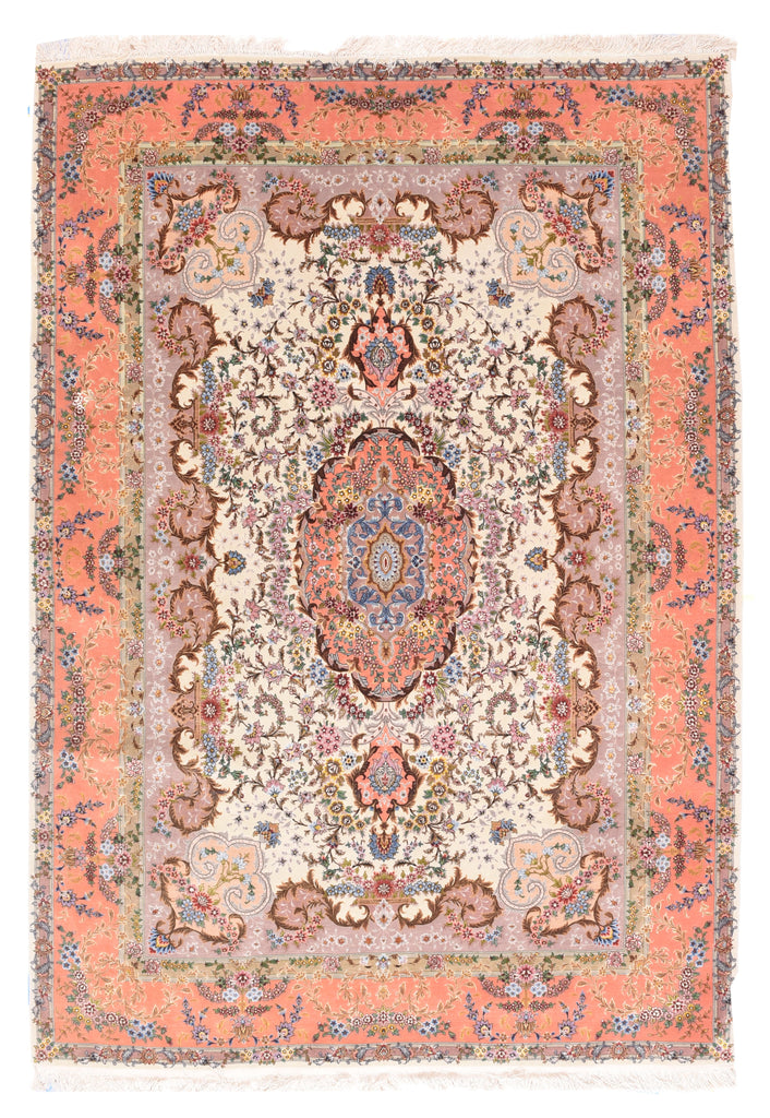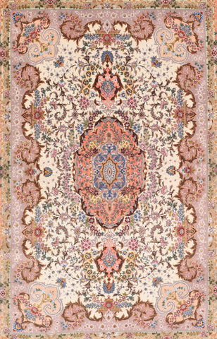 This modern tour-de-force NW Persian finely woven city scatter shows an old ivory field densely covered with smallish curled leaves and fantasy pa...