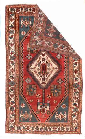 This central Persian rustic Chahar Mahal scatter has borrowed a few features from the Qashghai rugas of southwest Persia. The nested, stepped centr...