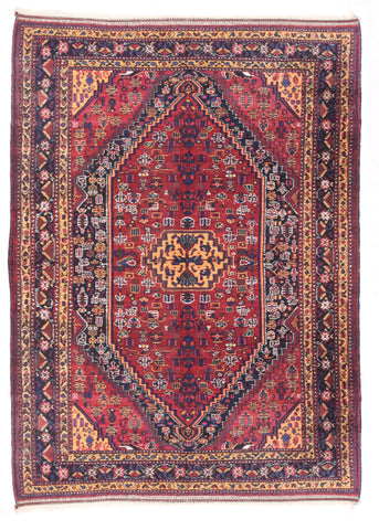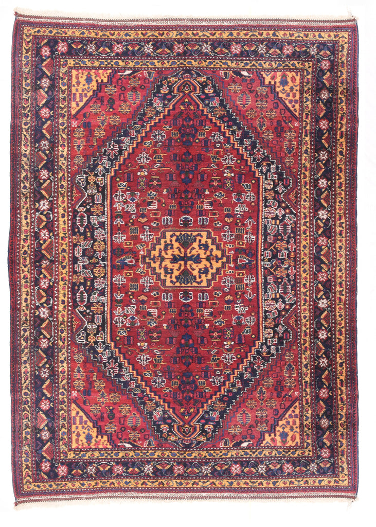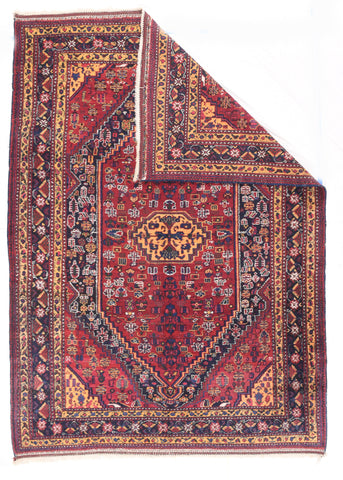 An attractive Persian tribal rug with an outstanding banana yellow in the stepped central medallion, the triangular corners, the minor borders, and...