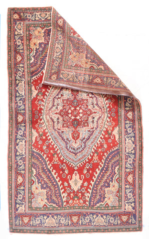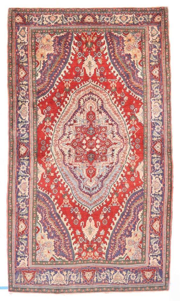 A visually extremely dynamic west Persian town scatter with a red field supporting a densely nested and flame-edged oval medallion accented in pow...