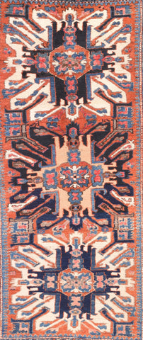 The rust madder4 field displays three “Eagle Kazak” medallions in navy and ecru. Often Caucasian Karabaghs (“Kazaks”) did not come in the appropria...