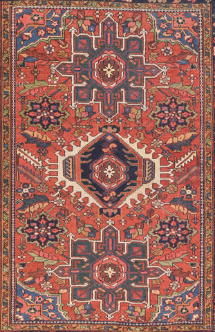 With the characteristic rust-red madder field supporting two green octogrammes vertically flanking a hooked navy and ivory hexagon, this rustic Her...