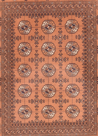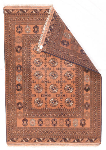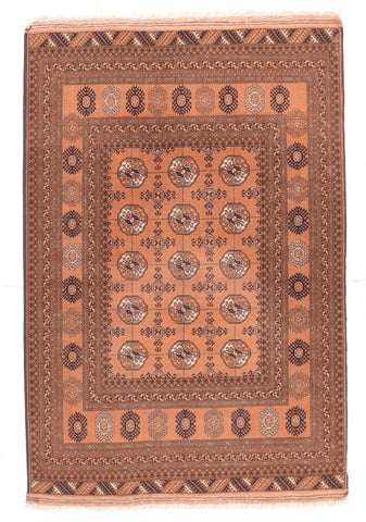 The sandstone field supports a three column, five row array of quartered Tekke tribal guls with nomadic Kurbaghe minor guls between. Many borders ...