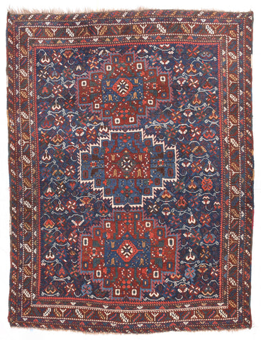 Not southwest Persian, but likely a SE Persian tribal creation with excellent indigo blues, both royal and cerulean. Three stepped octagon medall...