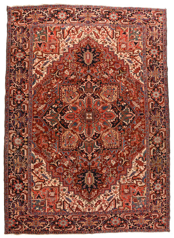 Semi Antique Light Brown Persian Heriz Area Rug.