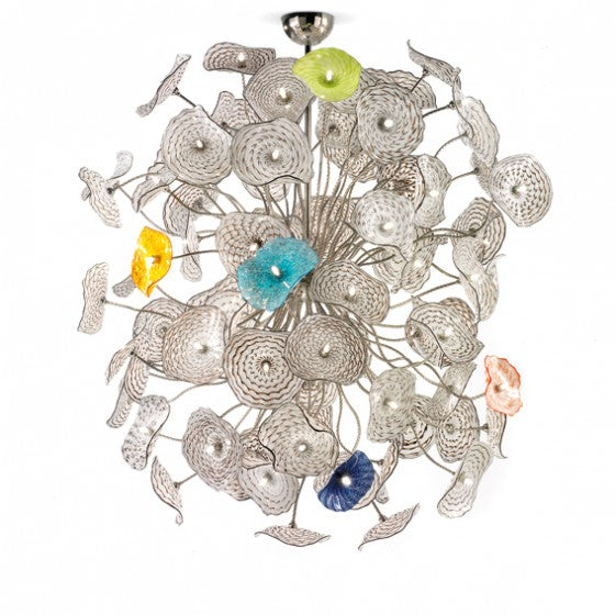 Sculptural blown glass lights in white and black or mixed colours. Each piece reminds to an organic shape with bright colors giving the illusion of...