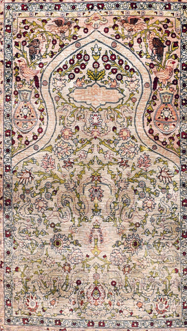Hand Knotted Turkish Herekeh Silk On Silk.