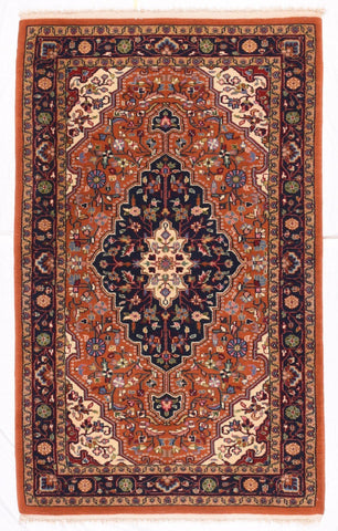 Hand Made Indo Tabriz Indian Rug,1970'S.