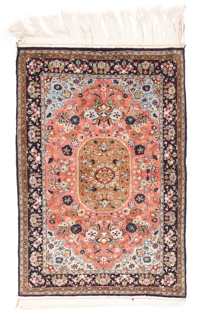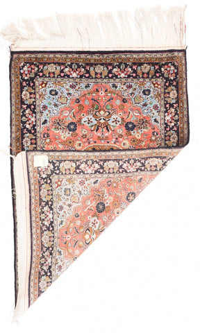 Extremly Fine Persian Qum Silk On Silk Door Mat Size, Hand Knotted