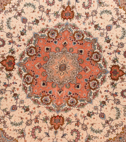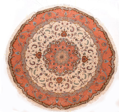 Hand Made Tabriz Persian Rug , Quality: Extremly Fine , Circa: 1970'S , Design: Round/ Floral , Made In: Tabriz , Origin: Persian.