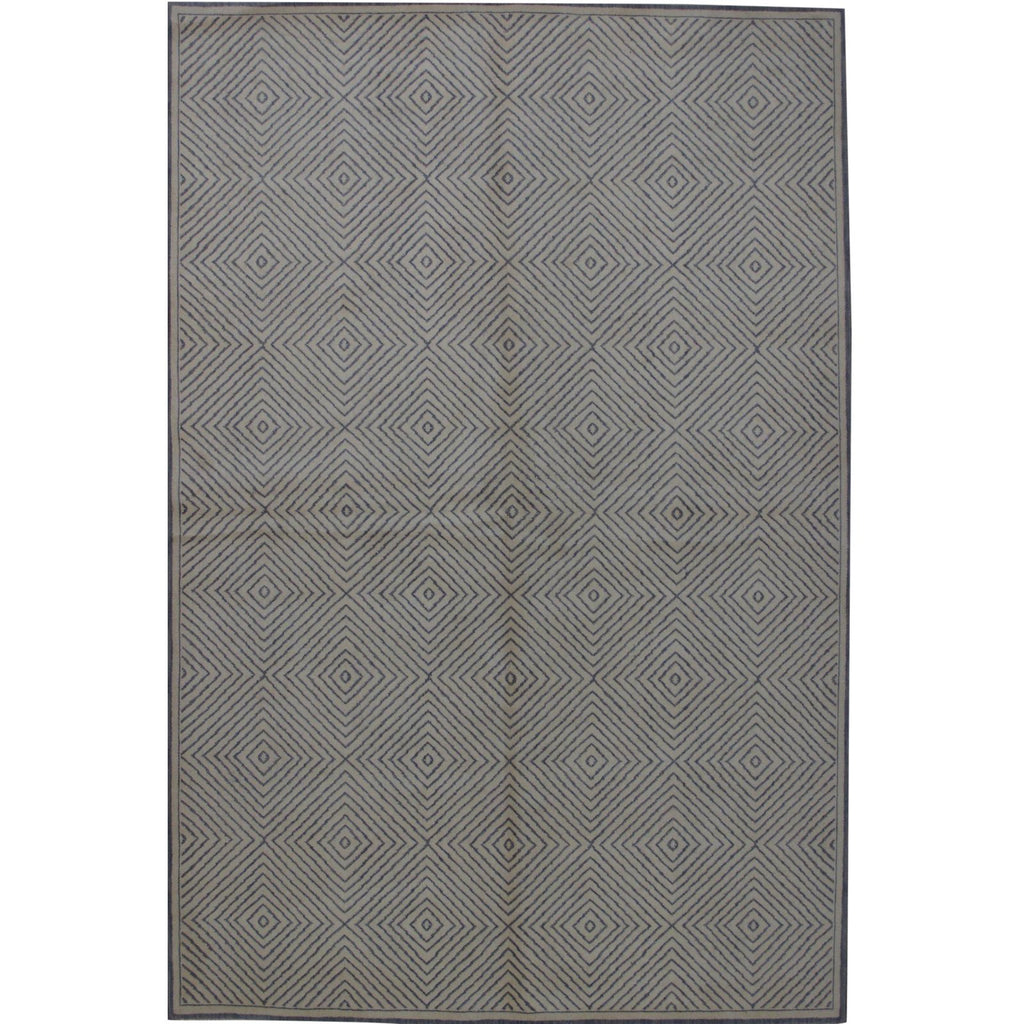 Soumak Design Hand Woven Gay Wool Rug - 6' X 9'